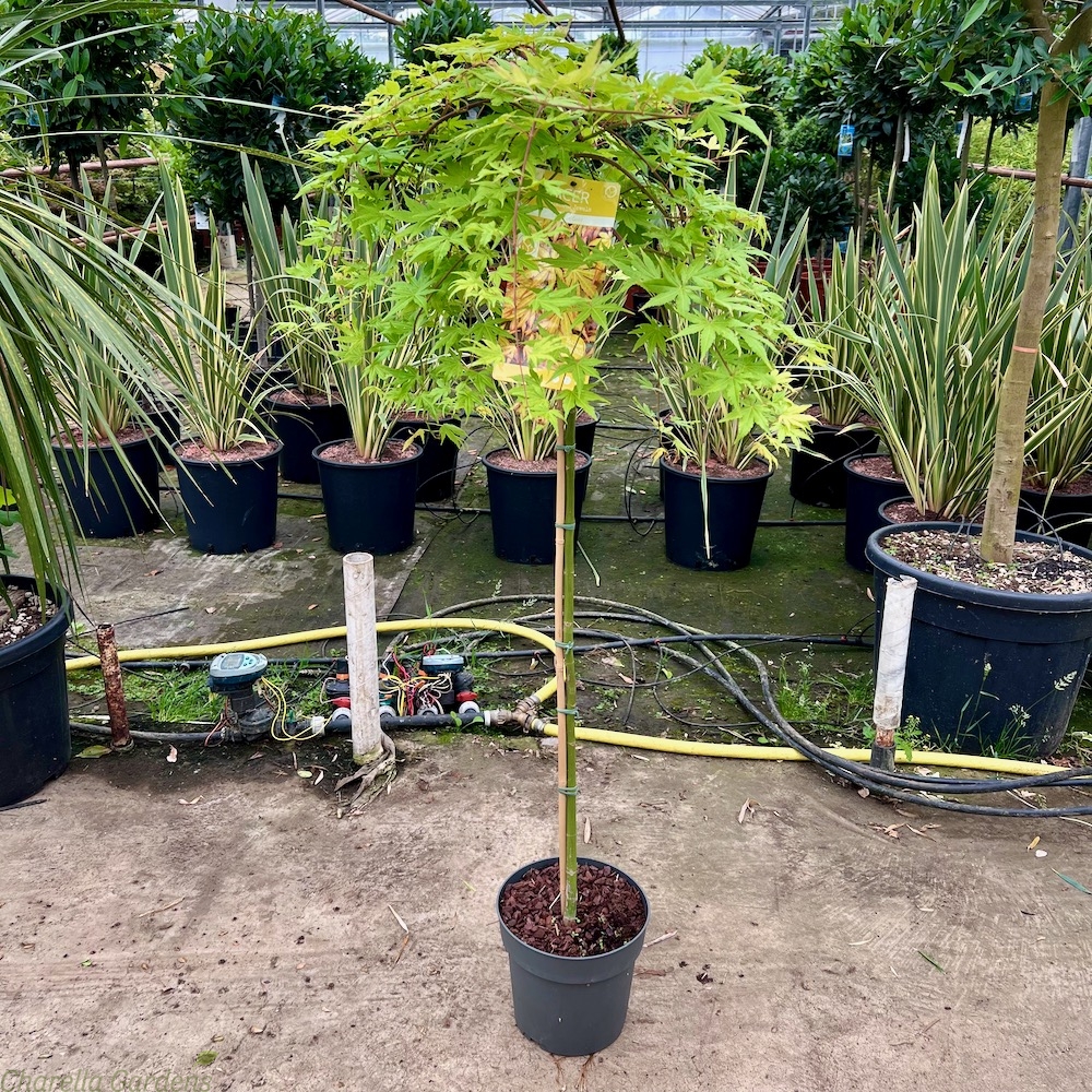 Acer palmatum ‘Cascade Gold’ zasenči z zlatimi listi, ki se spomladi in jeseni obarvajo v očarljive odtenke, izjemen za svetle barvne poudarke v katerem koli vrtu.