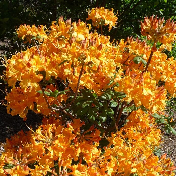 Listopadna azeleja sorte ‘Klondyke’ je očarljiv grmiček z globoko zlato-oranžnimi cvetovi. Njihova barva je temna in topla in izgleda fascinantno v kombinaciji z vijolično modro. Socvetja so sestavljena iz 7-9 cvetov,vsak je približno 7 cm širok, lijakast. Rast je tako široka, kot visoka, 1,2 m v desetih letih. Listi so podolgovati, srednje zeleni, ob odganjanju rjavo bronasti. Ljubi vedno vlažna tla, šotna in hranljiva tla na polnem soncu ali polsenci. Popolnoma prezimno trdna za min. -34°C.