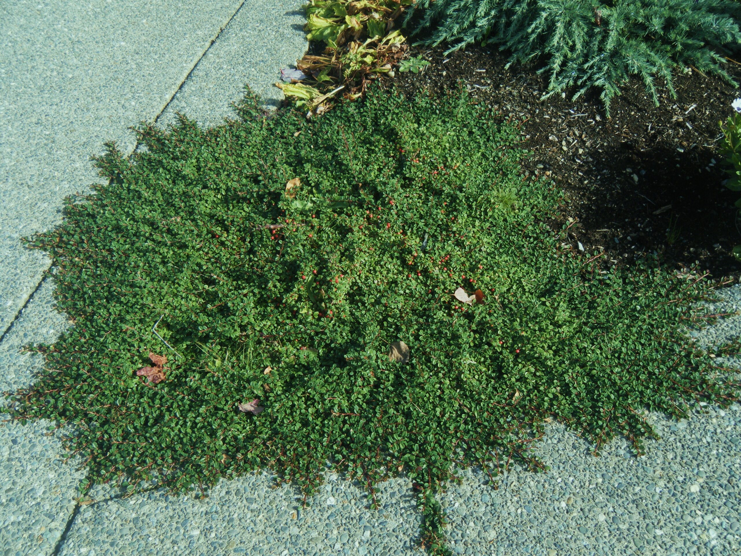 Zimzelena pokrovna rastlina z zelo nizko pritlehno rastjo. Listi so sijoči, manjši kot pri ostalih sortah. Spomladi cveti v drobnih belih cvetovih iz katerih se jeseni razvijejo oranžno rdeče okrasne jagode. Pozimi se listje obarva škrlatno rdeče ob velikem mrazu. Najbolje uspeva v vlažnih, dobro izsušenih tleh na soncu. Prilagodljiva rastlina za številne vrste tal.
