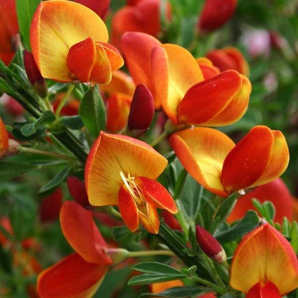 Listopadna grmovnica metličaste rasti, ki je znana po svojem spektakularnem pomladanskem cvetenju. Cvetovi so grahasti, mešanice rumene, oranžne in rdeče barve. Čas cvetenja: pozna pomlad – zgodnje poletje. Zraste približno 1 m visoko in široko. Listi so majhni, metličave vejice srednje zelene. Dobro uspeva v slabših, tudi skalnih tleh in se dobro upira suši. Rastlina zahteva obnovo vsakih 5-6 let, kar pomeni da jo je potrebno porezati skoraj do tal.