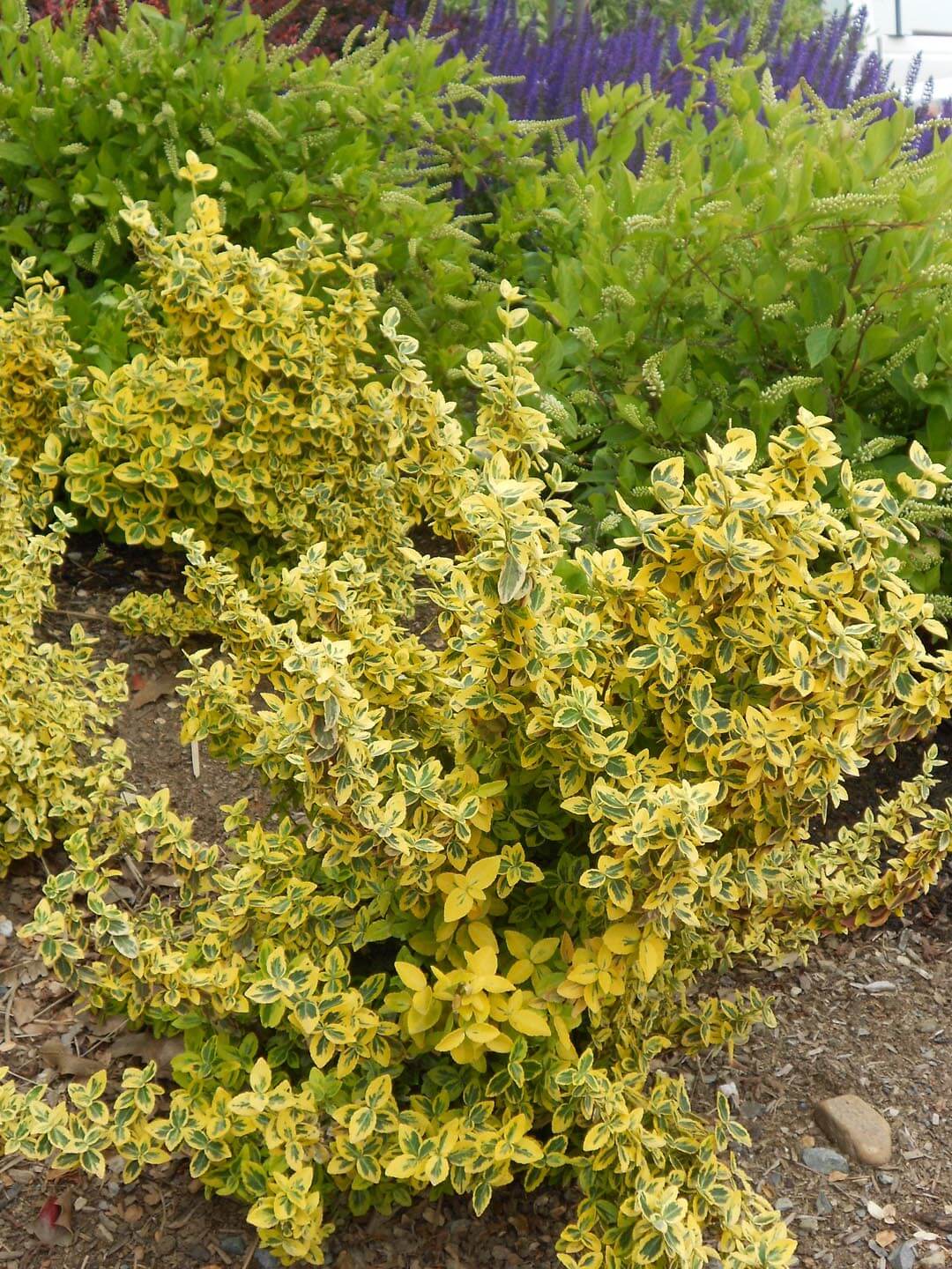 Je pritlikavi zimzeleni grmiček z rumeno zelenimi lističi, ki skozi zimo dobijo roza odtenek. V višino lako doseže od 0,5 do 1m, v širino od 1 do 1,5 m. Lega naj bo sončna do polsenčna, tla dobro drenirana.