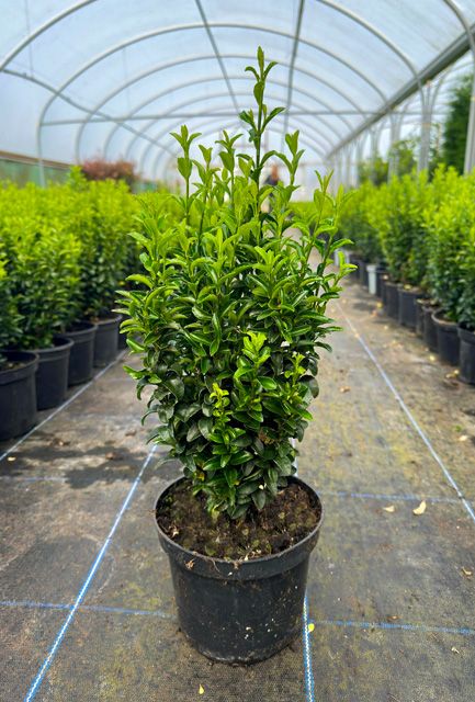 Euonymus japonicus ‘Green Spire’, znan kot japonski evonimus sorta ‘Green Spire’, je priljubljena okrasna grmovnica, ki izstopa s svojo pokončno, stebričasto rastjo in sijočimi, temno zelenimi listi. Ta sorta evonimusa je cenjena zaradi svoje zimzelene narave in sposobnosti, da ohranja ozko obliko brez veliko obrezovanja, kar jo naredi idealno za formalne žive meje, kot arhitekturni poudarek ali za uporabo v ozkih mestnih vrtovih.