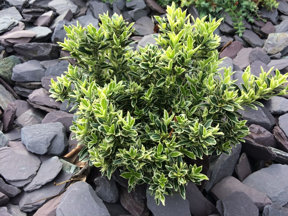 Nizko rastoč zimzeleni grmiček z majhnimi temno zelenimi listi, obrobljenimi z zlato rumeno barvo. Listi so eliptični, majhni, le 3 cm dolgi. Ustvarjena je za prekrivanje brežin ali nizkih živih mej. Ugajajo ji vlažna, vendar odcedna tla. Majhni, rumeni, dišeči cvetovi zacvetijo pozno pomladi ali zgodaj poleti. Prenaša široko paleto tal. V višino in širino v povprečju doseže od 30 do 80 cm.