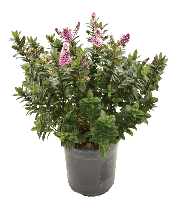 Hebe ‘Red Sunset’ je počasi rastoč, kompakten zimzeleni grm, ki pritegne poglede s pisanimi listi. Listi so zeleni s kremnim robom in nežnim rdečim odtenkom, ki se v hladnejših mesecih še okrepi v rdeče-vijolične barve. Poleti in jeseni se pojavijo tudi drobni rožnati cvetovi, ki privabljajo čebele in metulje.