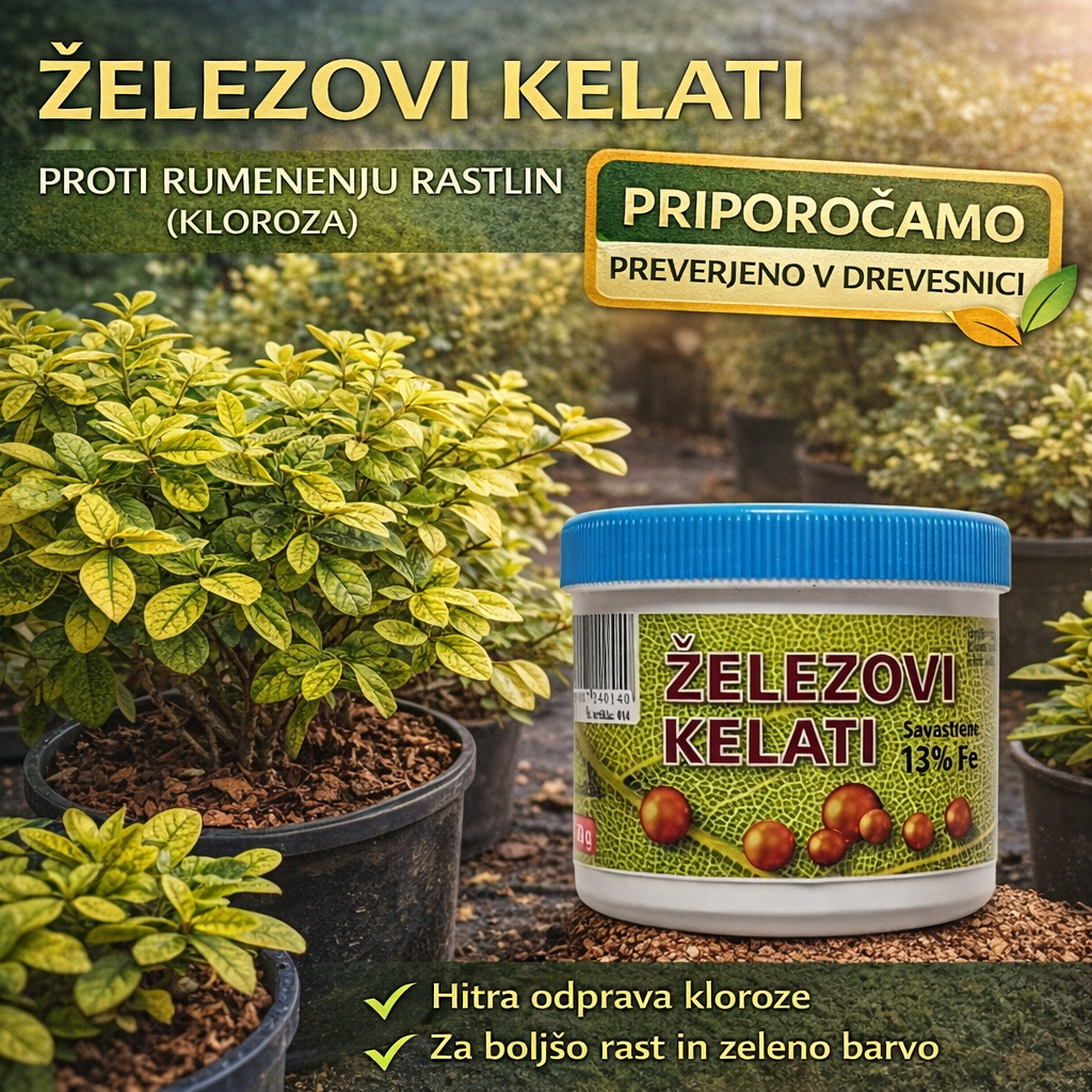 Pri klorozi je hitrost ključna – z uporabo železovih kelatov rastlinam hitro povrnemo zeleno barvo, boljšo vitalnost in enakomerno rast. Posebej priporočamo za sajenje na apnenčastih tleh in pri rastlinah, občutljivih na pomanjkanje železa.