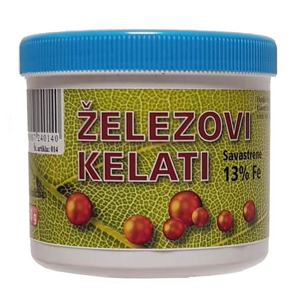 Železovi kelati so hitro dostopno gnojilo za učinkovito odpravljanje pomanjkanja železa, ki se najpogosteje kaže kot rumenenje listov (kloroza) ob še vedno zelenih listnih žilah. Železo je ključen element za tvorbo klorofila, zato njegova zadostna prisotnost neposredno vpliva na zdravo rast in intenzivno zeleno barvo rastlin.