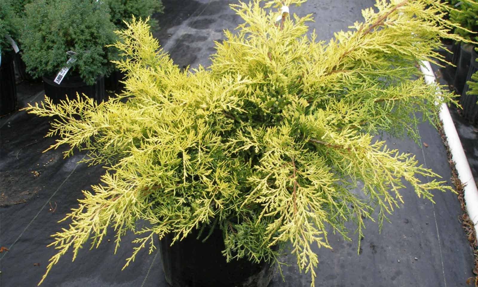 Izjemno kontrastna, zimzelena rastlina za vrtove z zlato rumenimi iglicami. V višino se dvigne 1 m, v širino lahko do 3 m. Lega naj bo izrazito sončna, takrat bo obarvanost iglic najlepša.