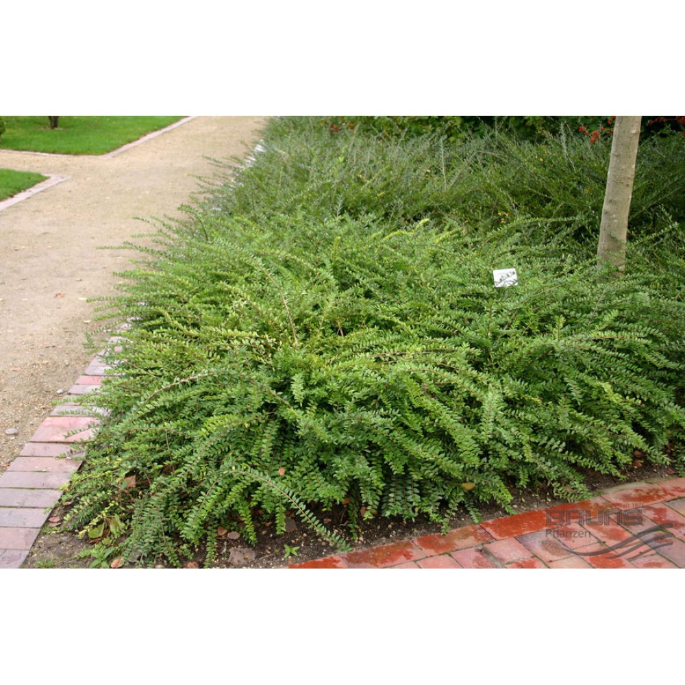 Nizek zimzeleni grmiček, ki zraste do 1 m. Listi so majhni,podolgovato suličasti, 1-3 cm dolgi, svetlo zeleni in sijoči. Spomladi zacveti v cevastih, nežno rumenih cvetovih, iz katerih dozorijo vijolične jagode. Odlično prenaša obrezovanje, mestno okolje, senco, vročino in sušo. Rastline na m2: 2-3 sadike.