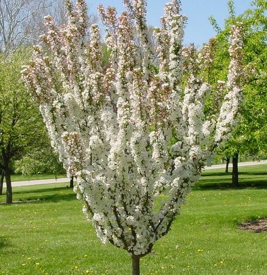 Spomladi se prekrije z množico rožnatih popkov, ki se odprejo v bogata bela cvetna socvetja. Cvetenje je zelo obilno in dekorativno, privablja čebele in druge opraševalce ter pričara izrazit pomladni poudarek. Po cvetenju se pojavijo majhni, oranžno-rdeči plodovi, ki na vejah vztrajajo do pozne jeseni ali celo zime. Plodovi so užitni, vendar bolj primerni za ptice in okras kot za kulinariko.