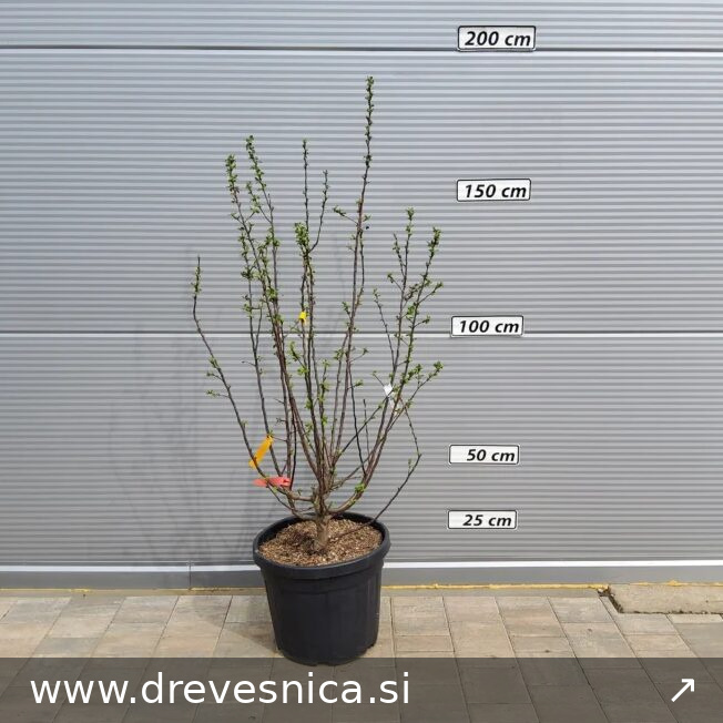 Listopadno drevo, v mladosti piramidne oblike, kasneje kroglasto. V višino in širino zraste od 4 do 7 m. Cveti belo spomladi v aprilu in maju. Plodovi so rumeno-rdeči in veliki 2 cm. Rastišče sončno, tla dobro drenirana in humozna.