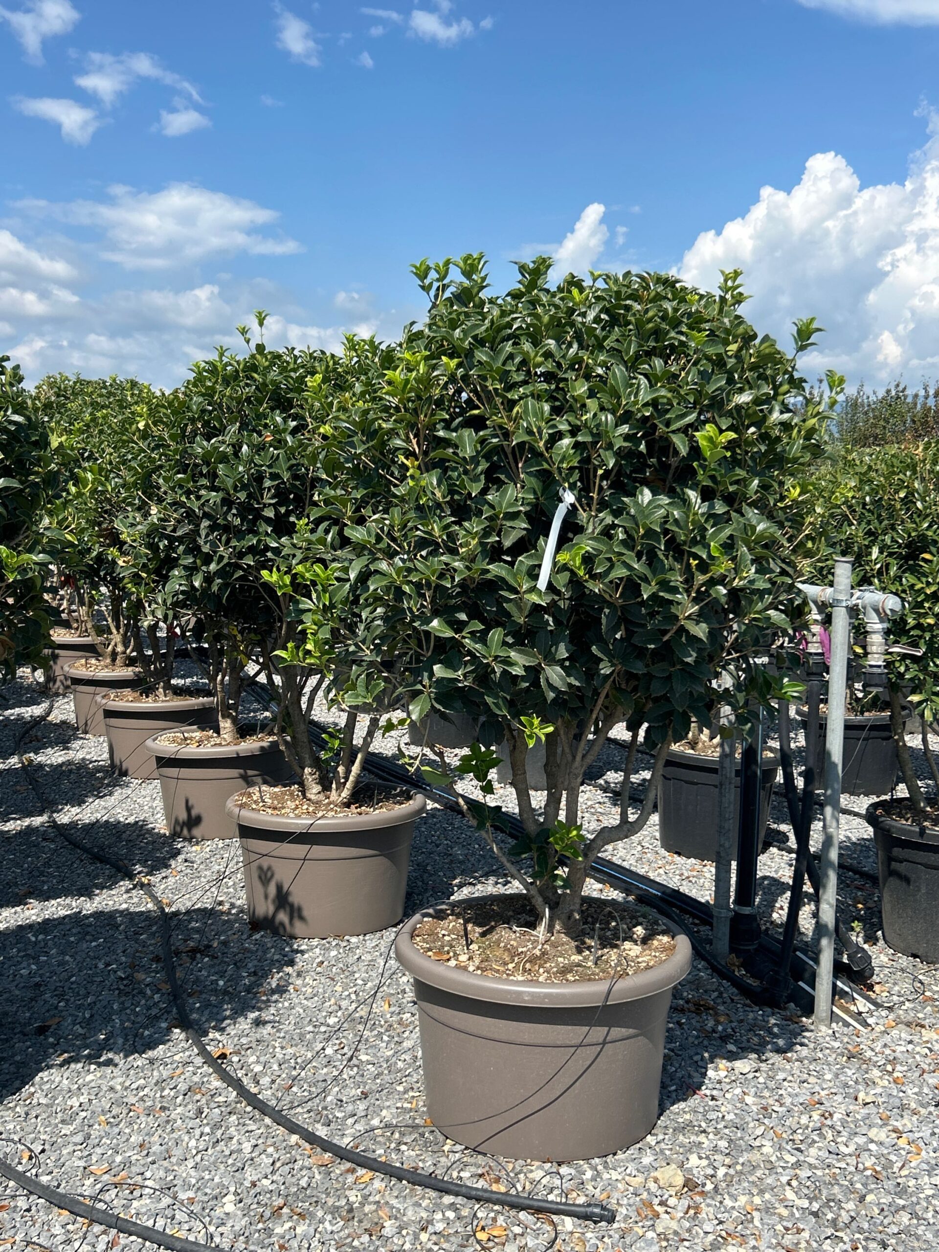 Osmanthus × fortunei je prestižni križanec med Osmanthus fragrans in Osmanthus heterophyllus, ki združuje izrazit, prijeten vonj z večjo odpornostjo in stabilno, gosto rastjo. V razredu EXTRA gre za velik, dolgoletno vzgajan primerek z lepo uravnoteženo krošnjo, primeren za najzahtevnejše zasaditve.