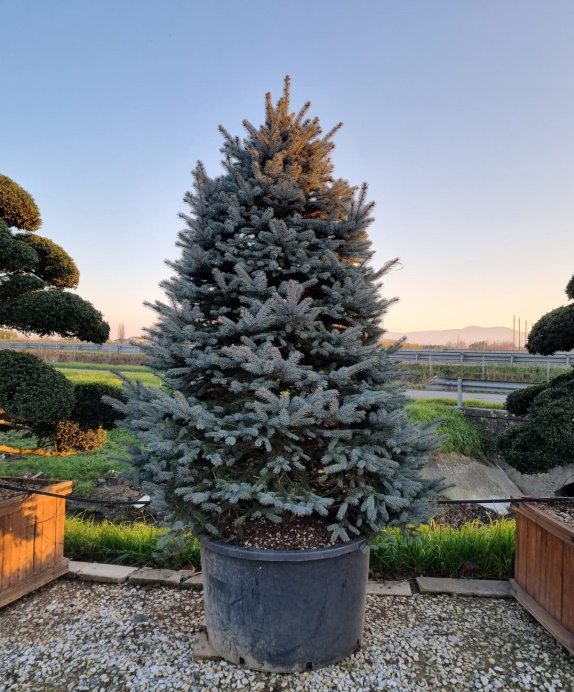 Ta sorta je znana po gosti in široki piramidni obliki. Veje so tesno razporejene, ter usmerjene rahlo navzgor, obraščene vse od tal. Iglice so jekleno modre barve. V desetih letih zraste od 3 do 4,5 m. Mladi storži so svetlo zeleni, v zrelosti svetlo rjavi in podolgovati. Rastišče sončno, tla zračna in humozna. Ne prenese zastajanja vode v tleh.