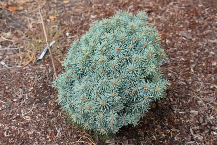 Pritlikav zimzeleni grmiček zelo počasne rasti. V višino in širino doseže cca. 30 cm. Rast je zelo gosta, zbita, enakomerna in kroglasta. Iglice so sivo modre in bodeče. Sadimo ga na sončne lege, tla dobro drenirana, humozna, nekoliko bolj kisla.