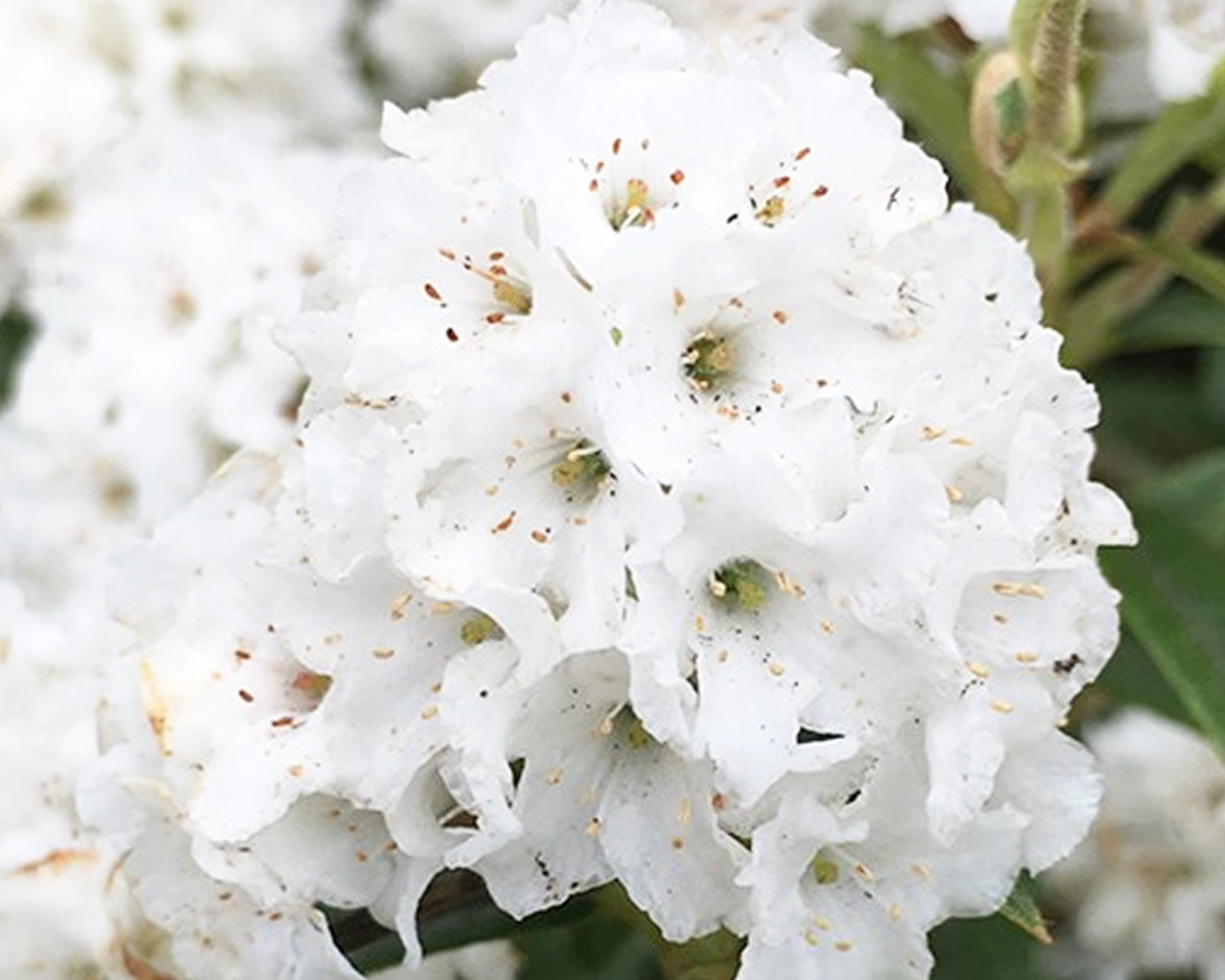 Pozno cvetoča sorta, nizke in kompaktne rasti. V desetih letih doseže od 0,5 do 0,7 m višine in širine. Listi so svetlo zeleni, ozki in zaobljeni. Cveti od maja do junija v beli barvi. Za rast potrebuje humozna in kisla tla, ki so enakomerno vlažna. Lega naj bo polsenčna do sončna, vendar ne preveč na žgočem soncu. Ne prenese preglobokega sajenja. Ceni zastiranje tal v coni korenin.