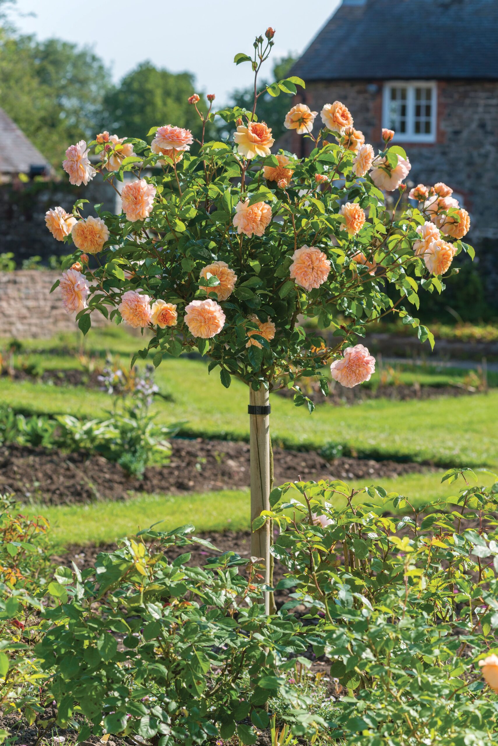 Oranžna vrtnica na steblu, z živahnimi barvami, ki oživijo vsako okolje. Sončna lega, potrebuje redno zalivanje in gnojenje, obrezovanje spodbuja cvetenje.