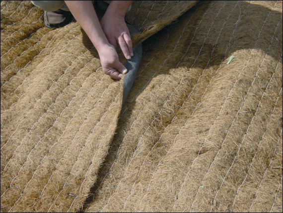 - Teža in Dimenzije: Plantex® CocoMat ima težo 540 g/m2 in se prodaja na 100-metrskih rolah, režemo pa ga tudi po tekočih metrih.