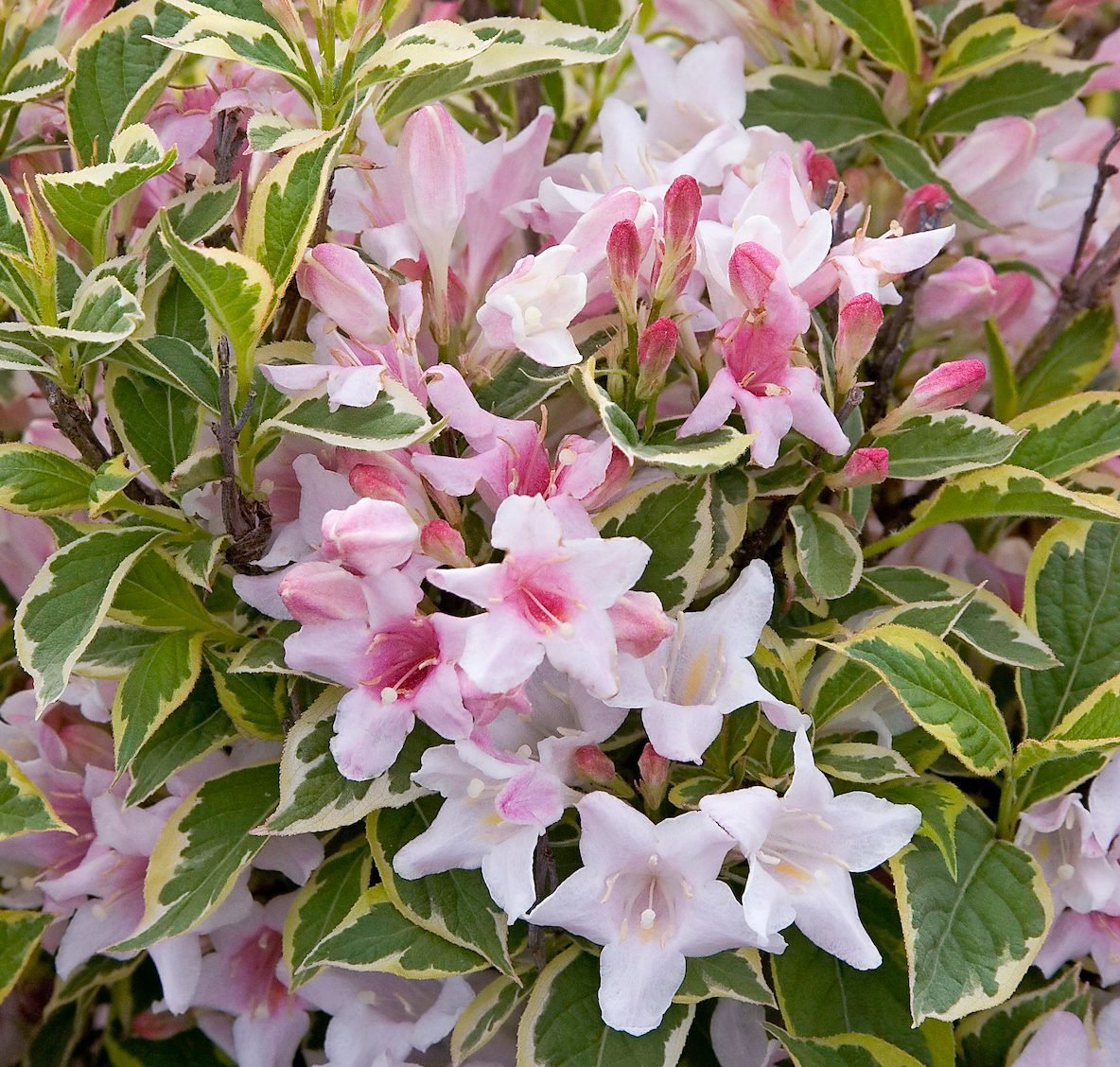 Zelo privlačen kultivar, ki ima v začetku poletja nežne kremasto roza cvetove in lepe, pestre liste, ki imajo kremasto beli listni rob. Je priljubljen in vsestransko uporaben listopadni grm, ki ga po potrebi lahko obrezujemo takoj po cvetenju. Na sončni legi tvori največji cvetni nastavek. Ugajajo ji dobro odcedna in plodna tla. V višino in širino lahko doseže največ 2 m.